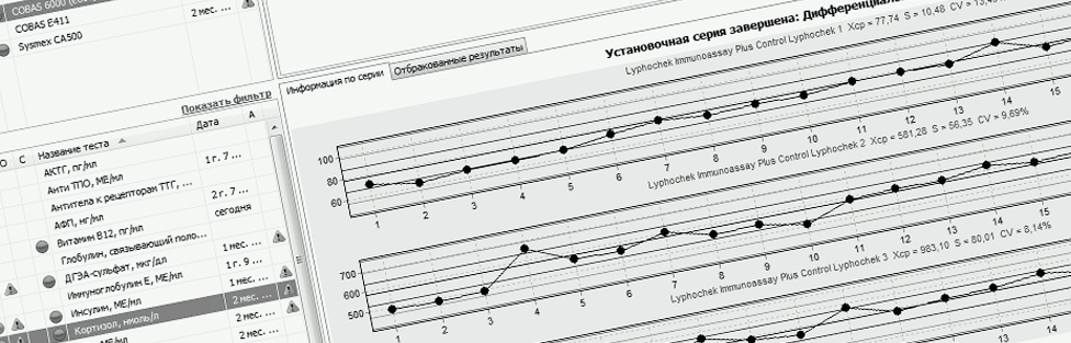 ЛИС "K-Lab" содержит полнофункциональный модуль внутрилабораторного контроля качества, позволяющий вести контроль качества по контрольным материалам в соответствии с нормативными документами.