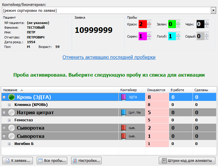• Проверяется, была ли зарегистрирована заявка, к которой относится данная пробирка